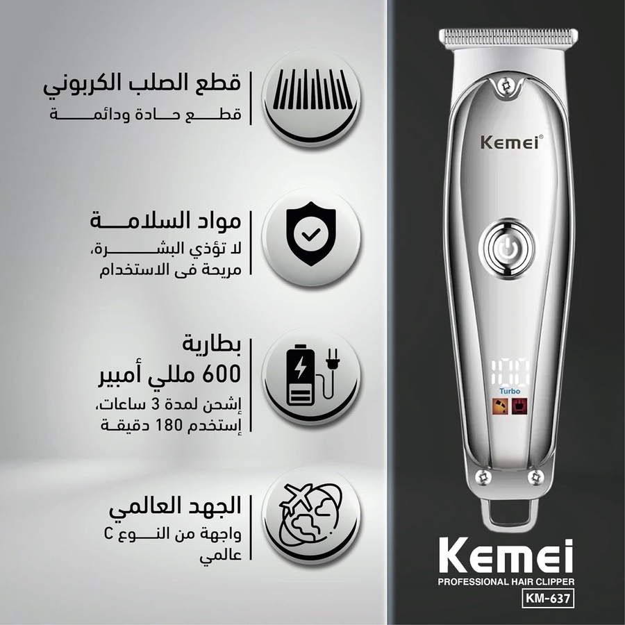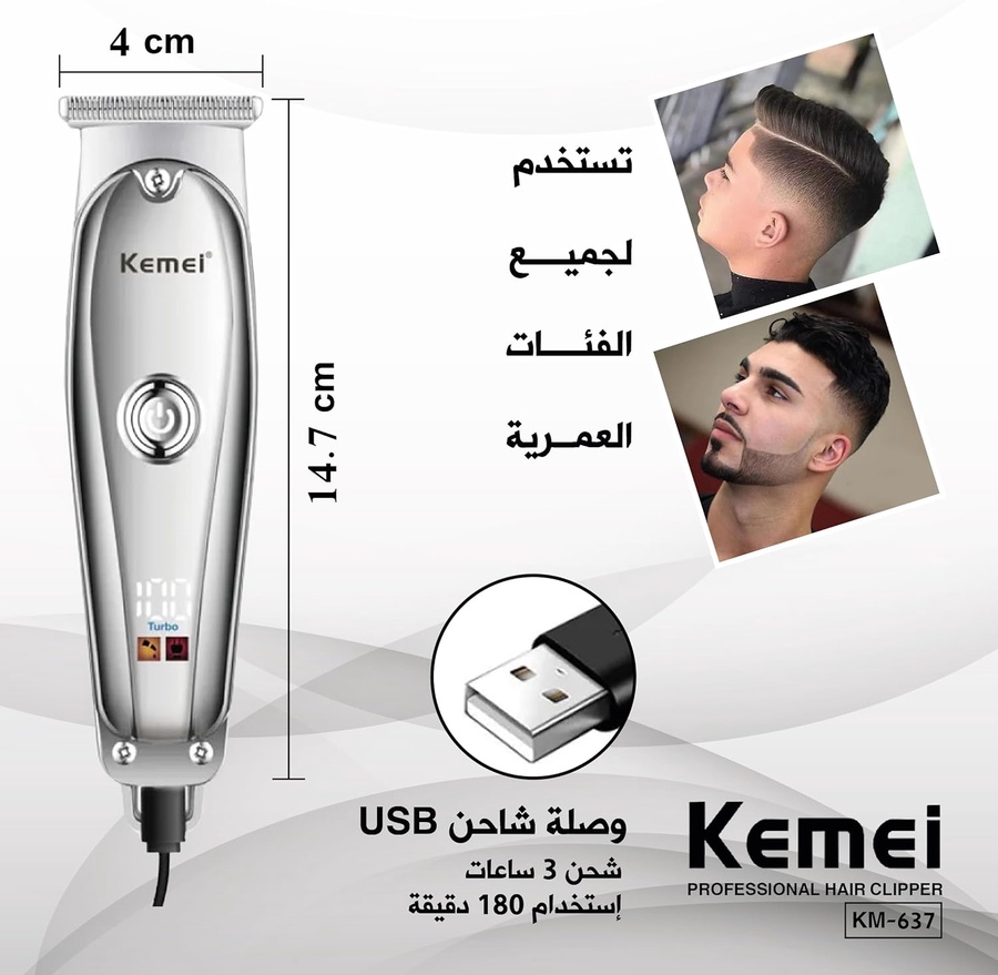 ماكينة الحلاقة الإحترافيه Kemei KM-637 بشاشة ليد ملونه و سرعة تيربو