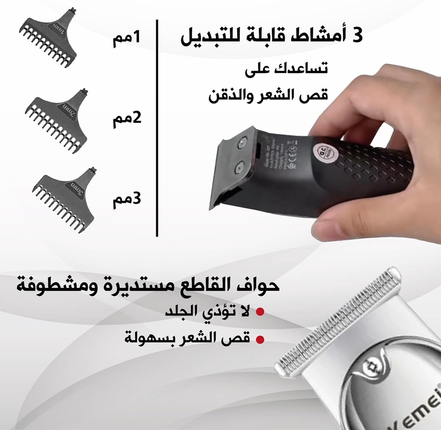 ⬅️ غيارات متعددة لضمان أفضل حلاقة و تحديد للذقن و الشعر 1 مللى و 2 مللى و 3 مللى